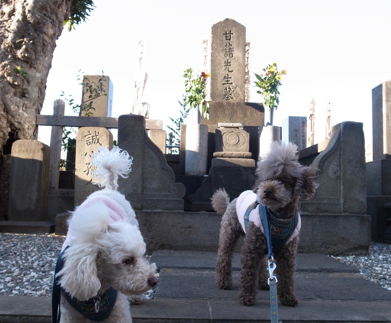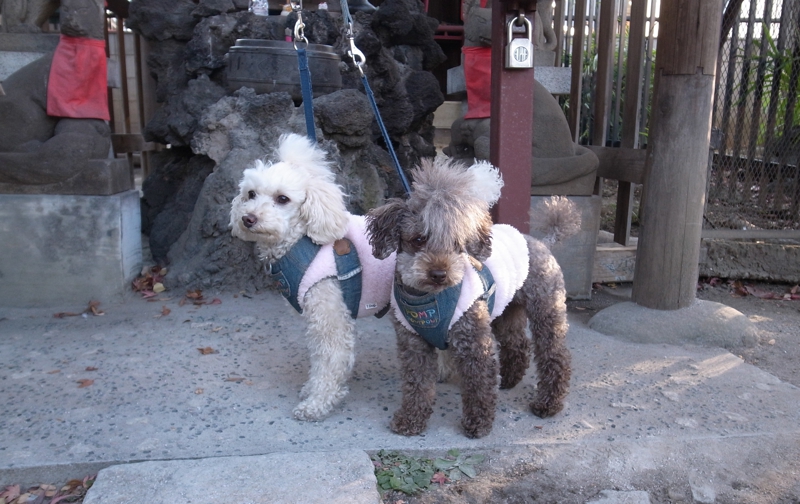 1/2 初詣に行きました。何時ものコースは「五百羅漢」→「蛸薬師」→「目黒不動」です。五百羅漢は御犬シャットアウト。交互に御犬様を門の外で待ってお参り。本当は御犬様もお参りしたいと思うのだけれど。次に蛸薬師、ここは御犬様も大丈夫。一緒にお参りしました。健康でありますようにと願掛けだるまを購入。次は目黒不動へ。今年は目黒不動の門前町も閉まってるお店が多く寂しい感じです。山門の前に来たら、ここもシャットアウト。山門前で記念撮影。ということで近くの七福神へお参り。境内地の御稲荷さん前でも記念撮影。それから目黒不動の周囲を歩いて青木昆陽の墓前でパチリ。最近は境内地に動物をつれては入れないところが多くなりました。来年からはもうお参りに行かないと思います。