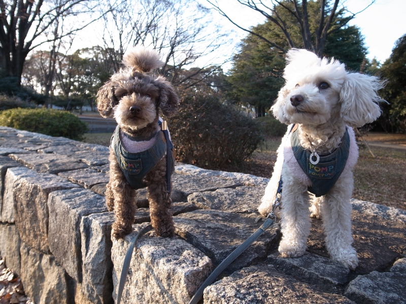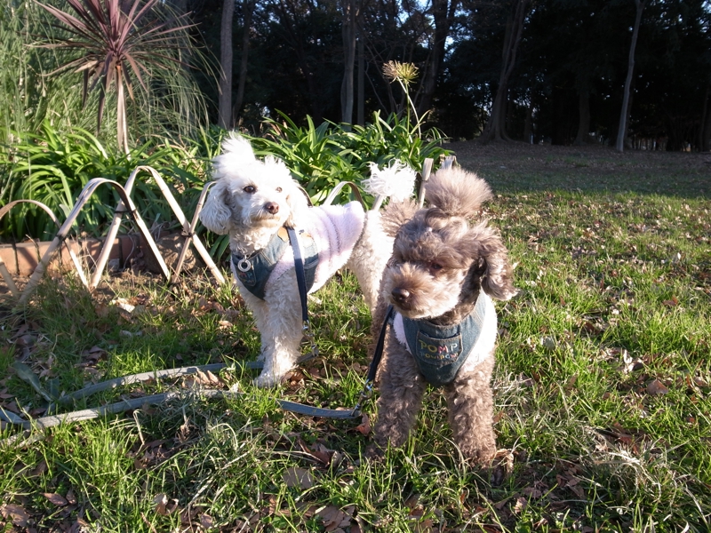 1/8 今日は久々に駒沢公園に行きました。目的は梅園に二本早咲きの紅白の冬至梅があるので、それが咲いてればいいなと思って行ったのですが、残念ながらまだ咲いてませんでした。でも遠目にはピックに色づいて見えました。数日温かい日が続けば多分咲ほころぶでしょう。あずきちゃんもきなこちゃんは落ち葉の中を楽しげに走り回ってました。最近は車で出かけるのは城南島海浜公園ですが、時折歩いての散歩はカミさんが駒沢公園まで行ってるようです。車に乗ったとたん、あずきときなこは城南島と思ったのでしょうか、なにやら方向が違うので文句を言ってるようにみえました。